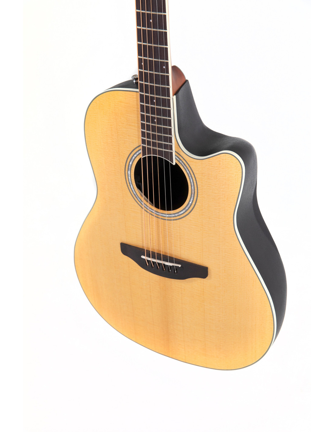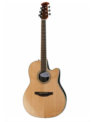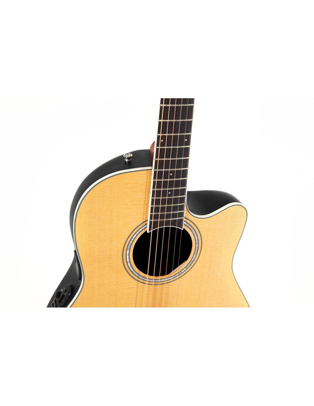 Ovation Celebrity Tradition CS24-4-G elektro akustična gitara. Ovation Celebrity Standard gitare predstavljaju sveobuhvatnu ponudu, kombinirajući performanse i kvalitetu značajki po atraktivnim cijenama. Gitara Ovation Celebrity Standard pruža prirodno iskustvo sviranja, zahvaljujući brzom satenskom vratu s radijusom hvataljke od 25 cm. Masivna smrekina gornja ploča pokazuje iznimnu responzivnost, prilagođavajući i nježno trzanje prstima i snažno trzanje s jednakom gracioznošću. Centralno postavljena zvučna rupa omogućuje jasan i rezonantan izlaz, pojačan nazubljenom X-bar potporom. Ova izvrsna gitara obavijena je prirodnim prozirnim premazom, naglašavajući inherentnu ljepotu gornje ploče. Kompozitno tijelo srednje dubine Lyrachord® postiže ravnotežu, nudeći topli bas uz udobnu svirljivost. Njegov prepoznatljiv oblik stvara zvučni profil drugačiji od drugih gitara. Više detalja u nastavku.
